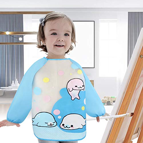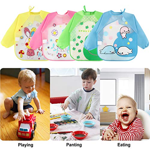 Discoball - مريلة أطفال مقاومة للماء بأكمام طويلة مناسبة لفطام الأطفال من الجنسين بعمر 6 أشهر إلى 3 سنوات، 4 قطع
