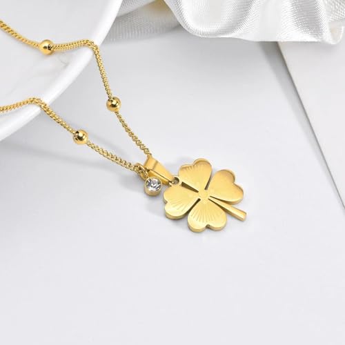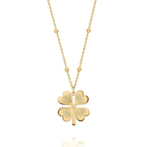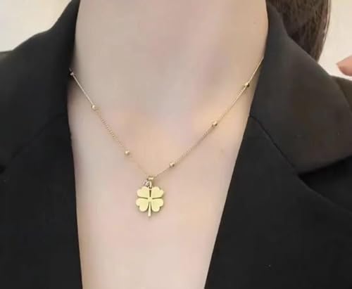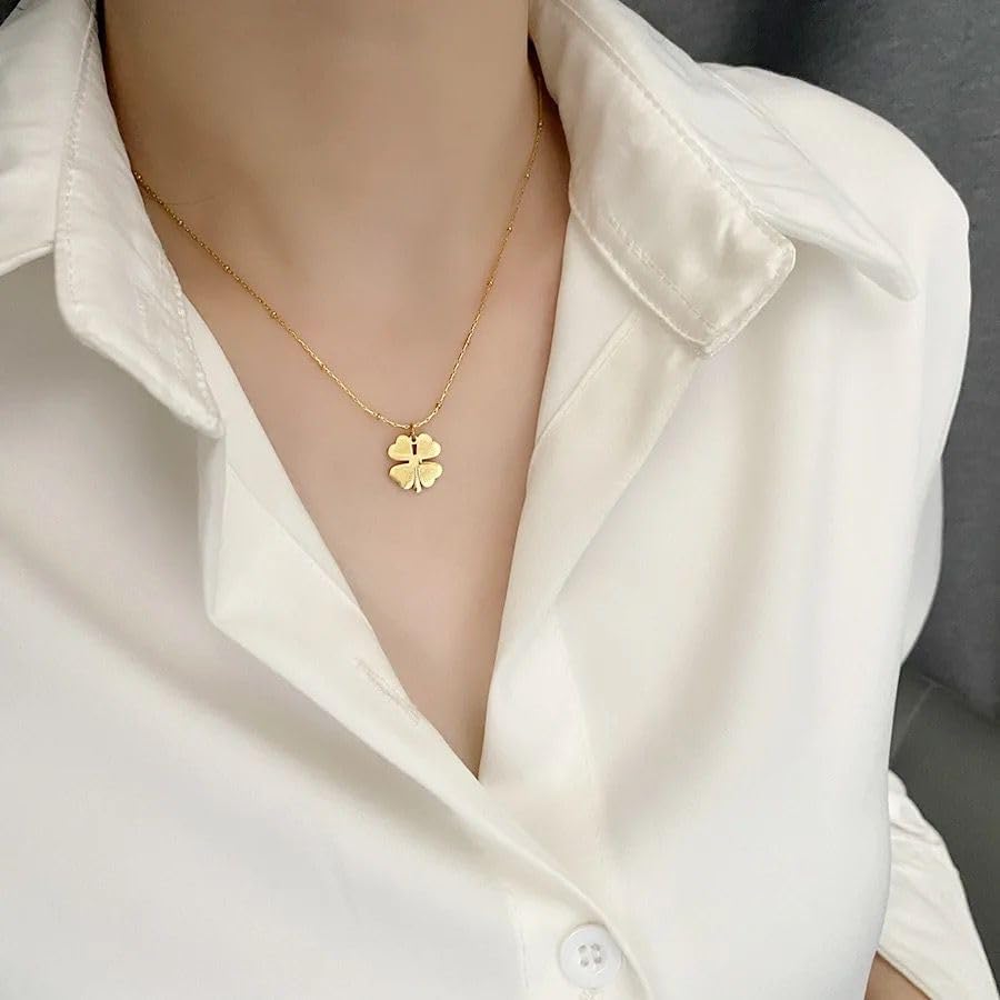 Qshop - اكتشف جمال القلائد الخاصة بنا مع قلادة بتصميم اوربي Luck-Clover من الستانلس ستيل مطلي بالذهب عيار 18 قيراط مجوهرات أنيقة قابل للتعديل , قلادة مجوهرات مكتنزة للبنات والنساء من كيوشوب®️