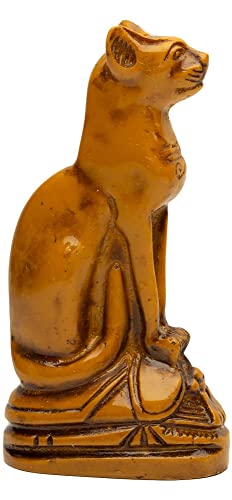 Discoveries Egyptian Imports - مجسم تمثال مصغر للإلهة القطة باستت مع الجعران بارتفاع 9.5 سم من ديسكوفيريز ايجبشان امبورتس، لون بني عتيق، صنع في مصر