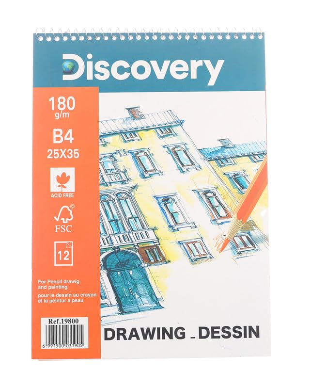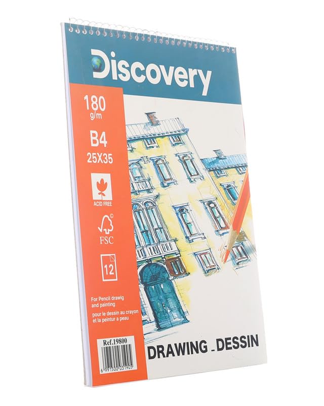 Discovery - ديسكفري سكيتش بسلك ابيض 180 جرام 12 ورقة B4 - متعدد الالوان C-12260