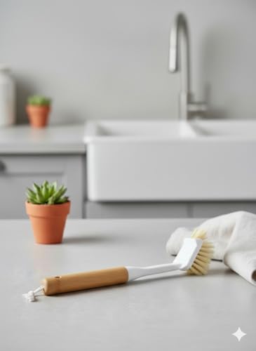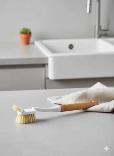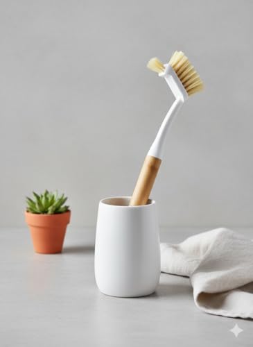 Generic - فرشة تنظيف صحون وأواني بيد خشب مع شعيرات قوية لا تخدش السطح تحافظ علي اسطح المطبخ نظيفة