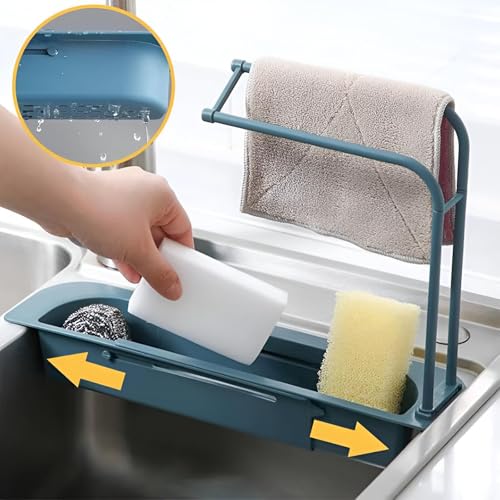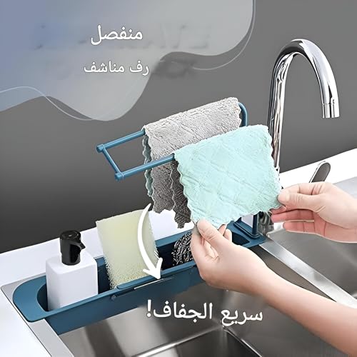 Generic - مجموعة فرش الاطباق - رف تلسكوبي قابل للتعديل يثبت على الصنبور مع حوامل اسفنجة، يحافظ على ادوات الاطباق منظمة ويمكن الوصول اليها بالقرب من الحوض (لون تركواز)