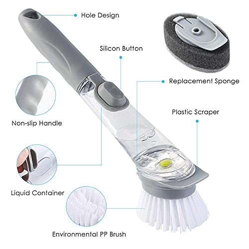 Spaceshoop - فرشاة أطباق لتوزيع الصابون، فرشاة تنظيف حوض المطبخ، فرشاة تنظيف بمقبض طويل