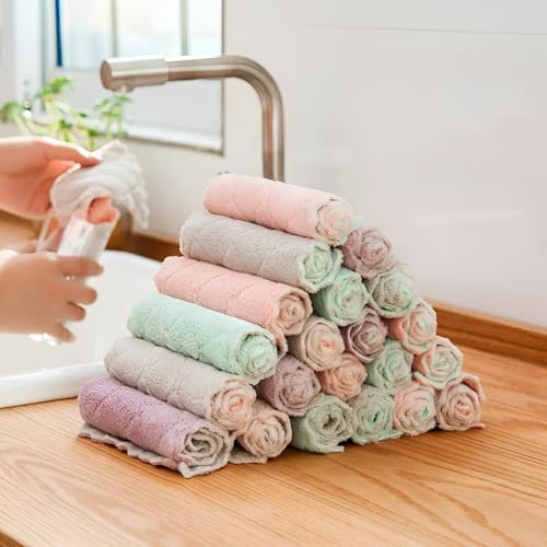 Generic - أقمشة الأطباق - 20 مجموعة من أقمشة أطباق المطبخ عالية الجودة ، والصوف المرجاني فائق الامتصاص لتجفيف سريع واحتياجات التنظيف المنزلية الناعمة.