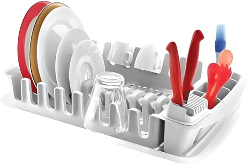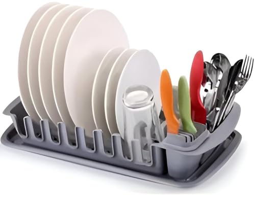 Generic - مجفف اطباق - رف تجفيف اطباق ملون وموفر للمساحة مع حامل ادوات مدمج، مثالي لتنظيم المطبخ بسرعة وترتيب