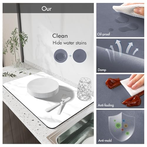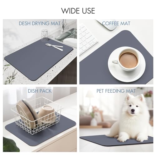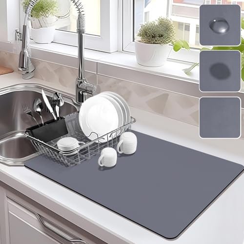 ZEAVOLA - بساط تجفيف الاطباق فائق الامتصاص، بساط تجفيف اطباق كبير لطاولة المطبخ (رمادي ضبابي، 24 انش × 16 انش)