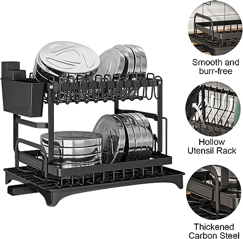- 【رف مطبخ أسود قوي ومتين】 مصفاة الأطباق هذه مصنوعة من الستيل الكربوني عالي الجودة مع طلاء للخبز بدرجة حرارة عالية. يمنع بشكل فعال رف أدوات المائدة من الصدأ وهو مناسب لفترات طويلة من الاستخدام؛ ورف أطباق أكثر سمكًا مطور لمزيد من القدرة على التحمل والثبات. مقاومة التآكل والثبات مثالية للاستخدام في المطبخ والطعام.