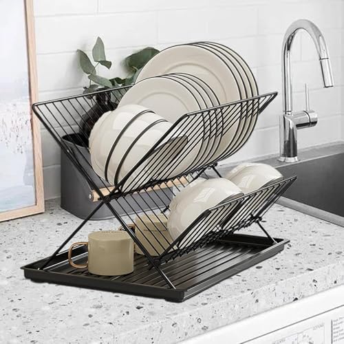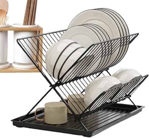 Generic - رف تجفيف أطباق لطاولة المطبخ من الفولاذ المقاوم للصدأ، مصفاة أطباق بحجم كبير لطاولة المطبخ، منظم مطبخ للأطباق والمعالق والشوك، أسود