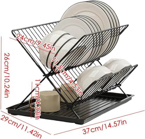 - تصميم موفر للمساحة: رف أطباق من طبقتين بعرض 35 سم وارتفاع 25 سم، مثالي لزيادة مساحة سطح الطاولة مع استيعاب أطباق متعددة