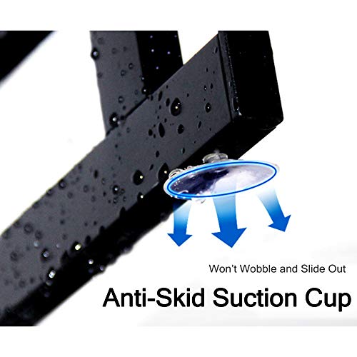 - 【تصميم فريد】مصنوع من الستانلس ستيل مع لمسة نهائية مقاومة للتآكل، أكثر متانة وقوة، تصميم إطار المثلث الصحيح وقاعدة التثبيت بالشفط المنزلقة في الأسفل يجعل الرف لن يتمايل أو ينزلق للخارج. حاجز الحماية مرتفع بما يكفي للحفاظ على الأشياء من السقوط.