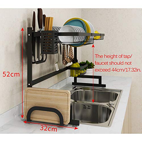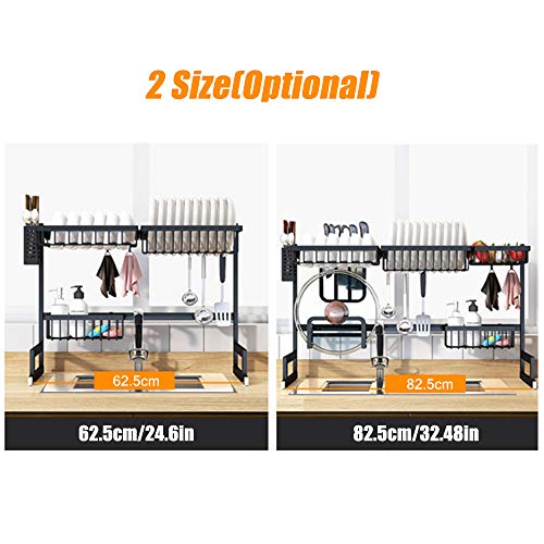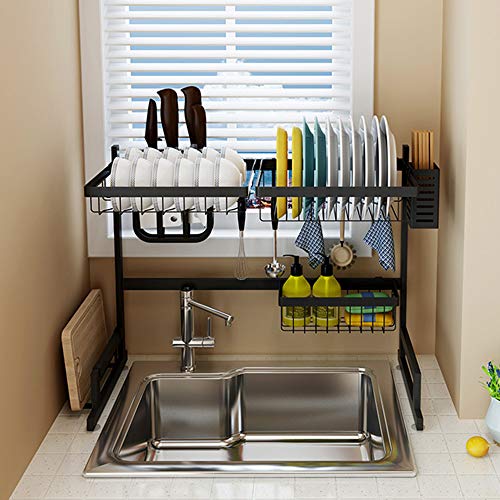 lifcasual - مصفاة تصريف الاطباق فوق الحوض من لايف كاجوال، حامل تصريف من الستانلس الستيل بسعة كبيرة بطبقتين لتنظيم الرف مع خطافات حامل الاناء من اجل المطبخ، ستانلس ستيل، أسود
