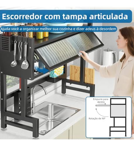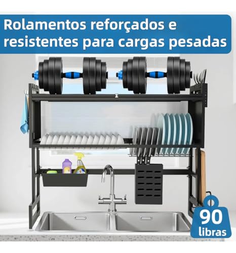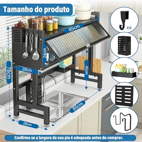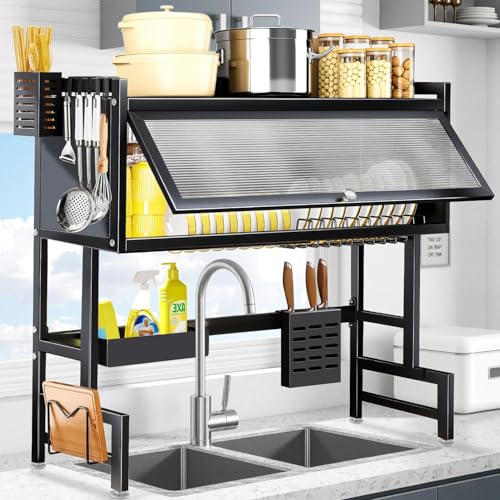 MONWO - رف تجفيف الاطباق فوق الحوض، رف تجفيف الاطباق منظم حوض معلق اسود (اسود، 85 سم)