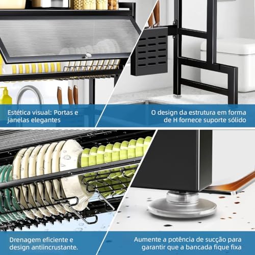 - 【رف تجفيف الأطباق فوق الحوض مع باب】رف تجفيف الأطباق المطور من الجيل الجديد. توفر هذه الميزة المحسنة طريقة أكثر تنظيمًا لاستخدام رف التجفيف الخاص بك. حافظ على نظافة سطح الطاولة وتنظيم المطبخ.