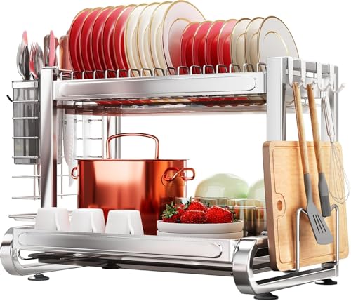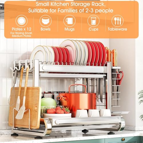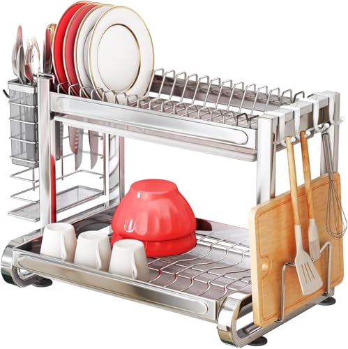 Generic - مطبقية أطباق 2 دور – خامة عالية الجودة، تصميم عملي لتجفيف وتنظيم الأطباق والأكواب