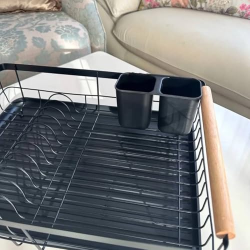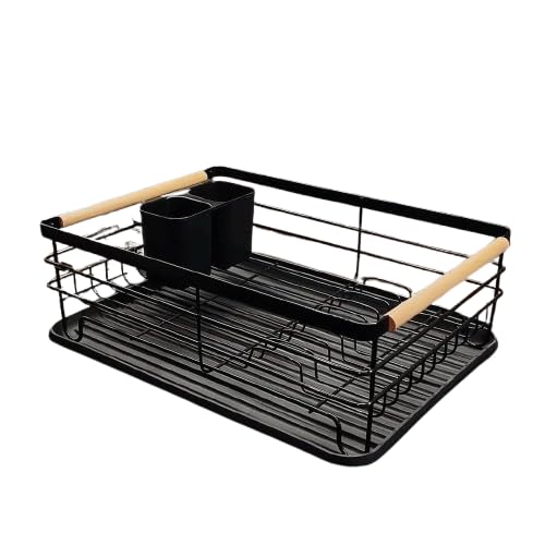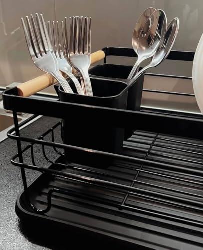 Generic - مطبقية أطباق – منظم متكامل للأطباق والأكواب والمعالق مع حوض تصريف مياه مباشر، لون أسود أنيق ( R )
