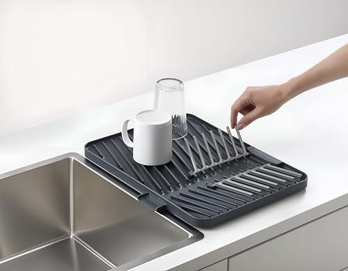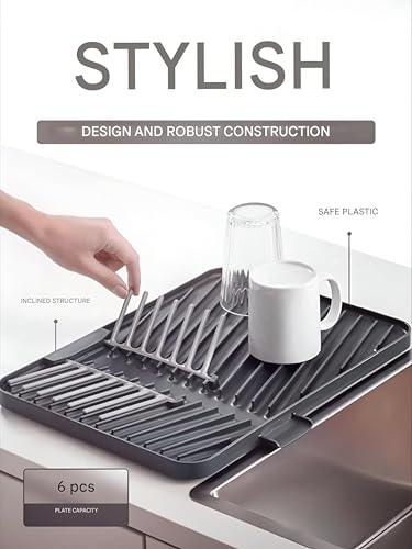 Generic - رف اطباق - لوح تصريف مبتكر قابل للطي مع ميزات قابلة للطي موفرة للمساحة، مثالي لأي مطبخ، مقاس واحد، لون رمادي انيق