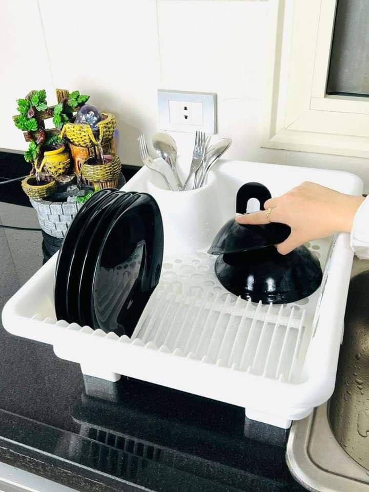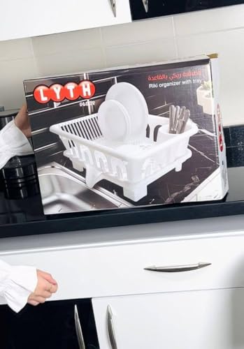 Generic - رف أطباق (ريكي) - (مكان للأطباق والأكواب) - (مصفاة وصحون) - (بلاستيك نقي) - (تنظيم الحوض بشكل أنيق) - (موديل جديد - M