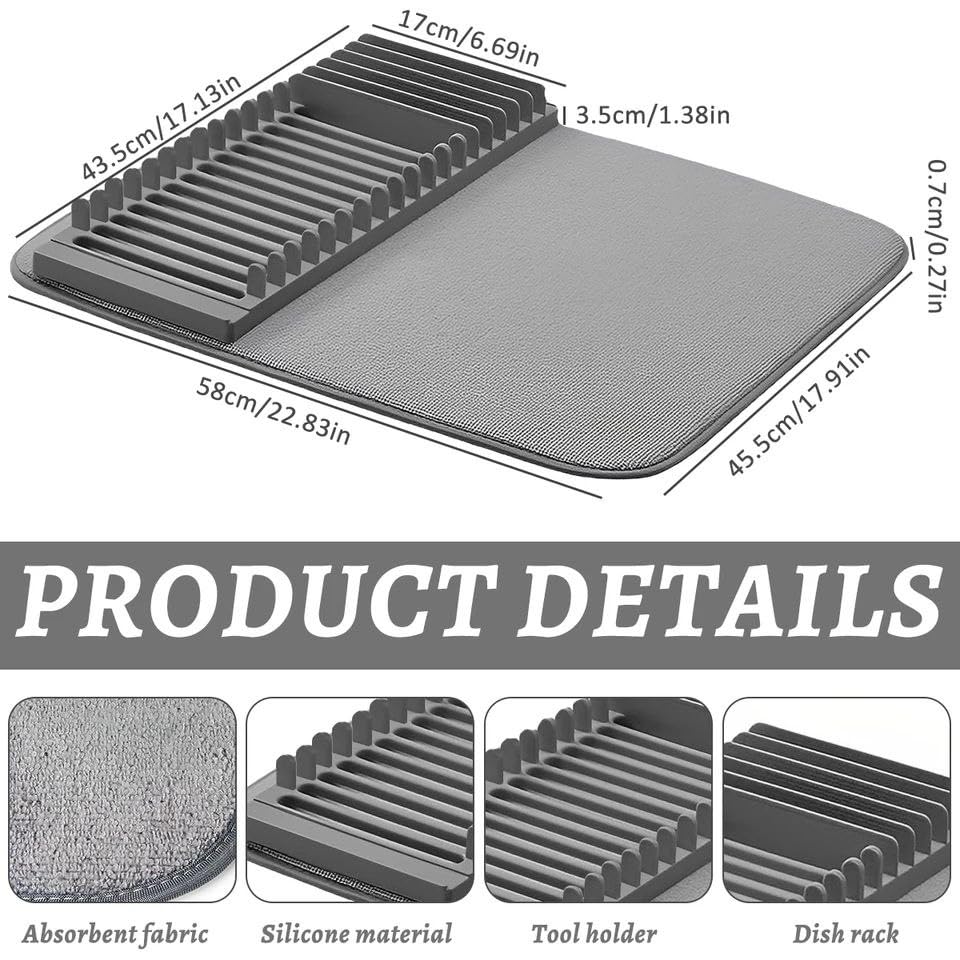 Generic - – سجادة تنشيف المواعين بحامل أطباق ومعالق (متريال فاخرة - المايكروفايبر المبطن سريع الجفاف) – تصميم يحمي ويحافظ على الأطباق والأ - من جينيريك