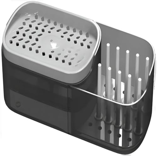 - يتم تحقيق قدرات تجفيف معززة مع حامل إسفنجي جيد التهوية يعزز تدفق الهواء، مما يسمح للإسفنجة بالجفاف بسرعة ويمنع نمو البكتيريا. وهذا يعزز النظافة ويطيل عمر أدوات التنظيف الخاصة بك.