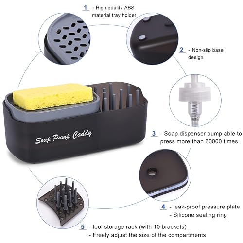 - يجمع موزع صابون الأطباق 3 في 1 هذا بين مضخة الصابون وحامل الإسفنج وصندوق التخزين في تصميم مدمج مدمج يزيد من كفاءة مساحة العمل. يحافظ هيكله المبتكر على منطقة الحوض مرتبة ومنظمة، مما يجعل إعداد الوجبات وتنظيفها أكثر انسيابية.