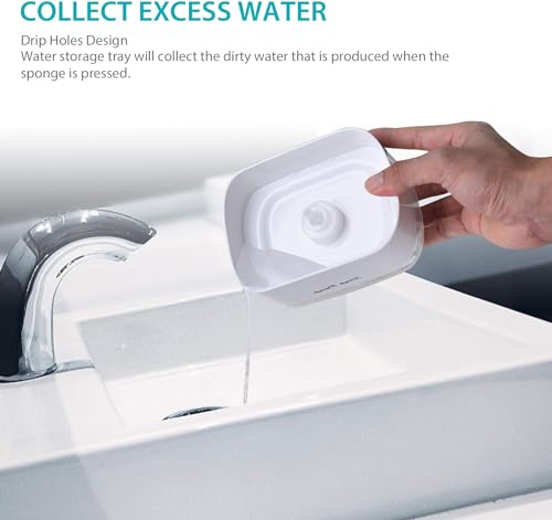 - [تصميم مبتكر] - صينية التصريف العلوية فقط قابلة للفصل، لذلك لا داعي للقلق بشأن تسرب المياه أو الإغلاق الفضفاض بسبب الفتح المتكرر. تساعد صينية التصريف المجوفة على جفاف الإسفنجة بسرعة، كما تمنع صينية تخزين المياه تدفق مياه الصرف الصحي مرة أخرى إلى حاوية المنظفات