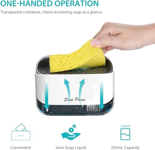 Generic - موزع صابون الاطباق لحوض المطبخ: احدث موزع مضخة سائل لغسيل الاطباق 2 في 1 يوضع على سطح الطاولة مع حامل اسفنجة واسفنجتين، موزع منظفات سائل الغسيل سعة 12 اونصة
