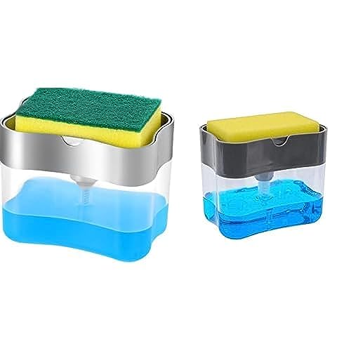 LIFEEZY - موزع صابون للاطباق مع حامل للاسفنجة 2 في 1 - علبة مضخة صابون لسطح الطاولة + رف للاسفنجة 2 في 1 موزع صابون للتنظيف - متعدد الالوان