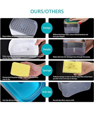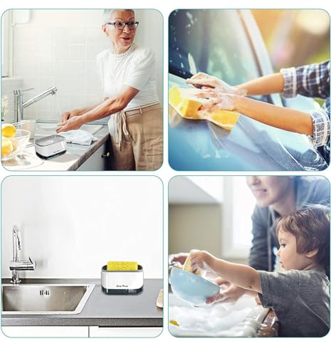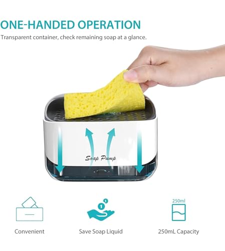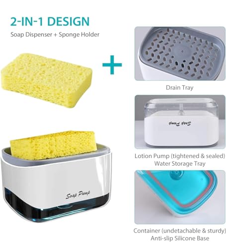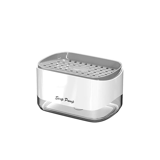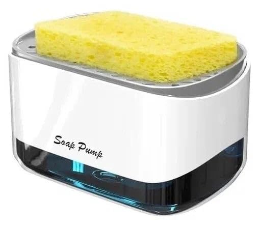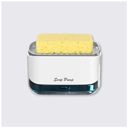 Spaceshoop - موزع صابون الاطباق مع حامل اسفنجة - مضخة يدوية 2 في 1 لغسيل السوائل (ابيض)