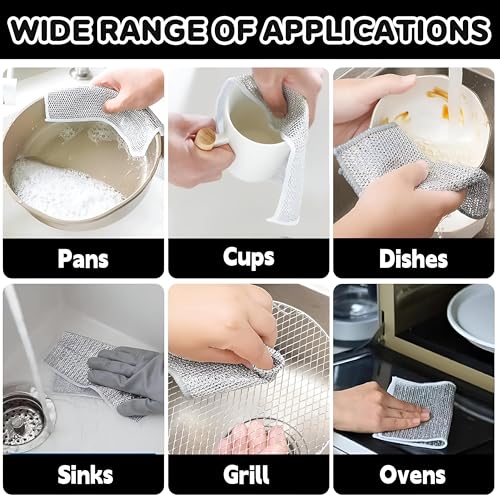 - تتميز أقمشة غسيل الأطباق المصنوعة من الستانلس ستيل متعددة الأغراض هذه بتقنية النسيج الشبكي المتقدمة مع قطع الماس والأسلاك المعدنية عالية الجودة، مما يوفر قوة تنظيف سهلة تزيل الصدأ وبقع الشحوم والأوساخ العنيدة دون إتلاف أواني الطهي أو جلد اليد.