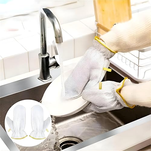 Generic - قفازات غسيل الأطباق- السلكية الفاخرة، قفازات معزولة متعددة الوظائف ومقاومة للماء مصنوعة من سلك فولاذي لتنظيف المطبخ بشكل فعال والحماية من الخدوش قطعتين