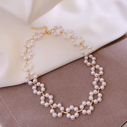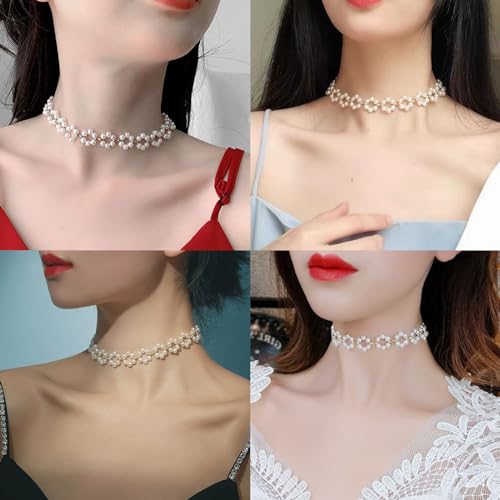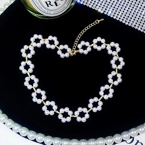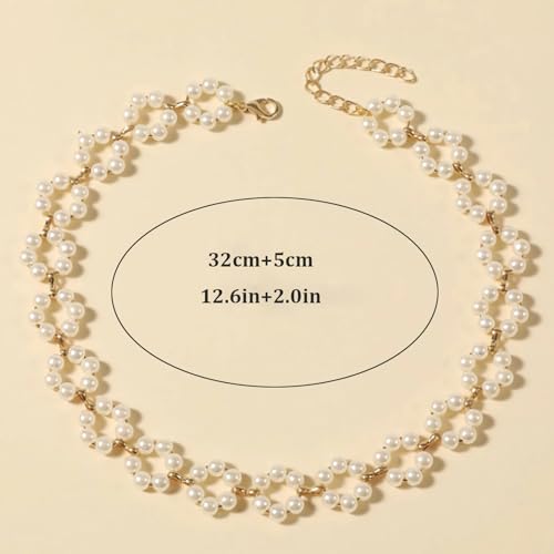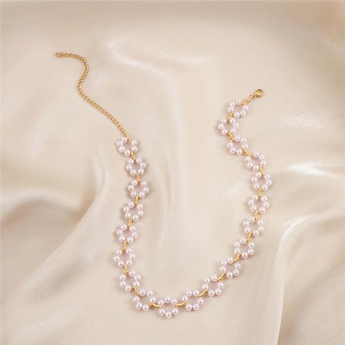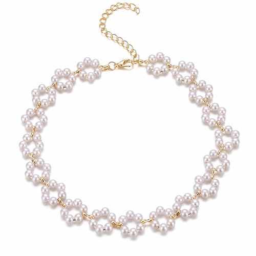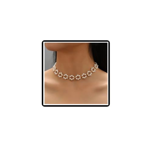 Dishowme - طوق ضيق من اللؤلؤ الصناعي والزهور، سلسلة رقبة منسوجة للنساء من دي شو مي