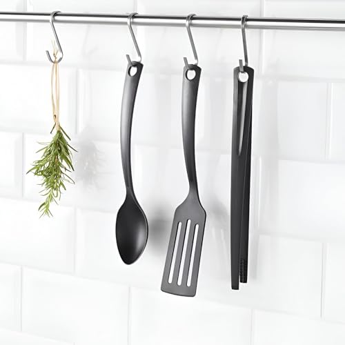 - تتضمن المجموعة أدوات مطبخ أساسية بأطوال عملية: زوج من ملقط الطهي بطول 29 سم للتعامل الدقيق، وملعقة بطول 28 سم للتحريك والتقديم، ومقلاة بطول 31 سم لقلب الأطعمة وتقديمها بسهولة.