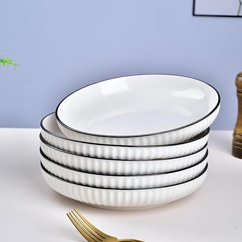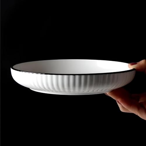 Generic - طبق امن للغسل في غسالة الصحون - تصميم بورسلين دائري انيق، متوافق مع الميكروويف وسهل التنظيف، وعاء كبير متعدد الاستخدامات 18 سم، مثالي لتقديم المعكرونة او السلطات. (3 طبقات)