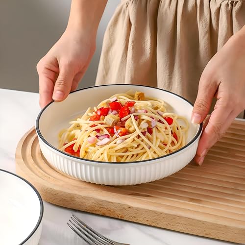- وعاء نودلز أنيق من البورسلين مصمم للاستخدام في الميكروويف وغسالة الصحون لتعزيز تجربة تناول الطعام، مقاس كبير 18 سم.
