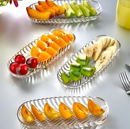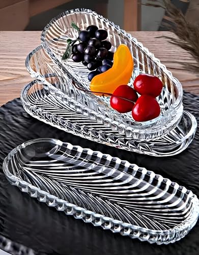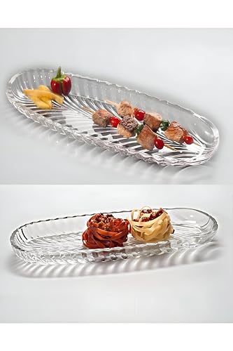 Generic - طبق امن للاستخدام في غسالة الصحون - طبق زجاجي كريستالي انيق، مثالي لتقديم الكيك والمعجنات، سطح مستوٍ مستطيل، متوافق مع غسالة الصحون، مجموعة من قطعتين لسهولة التصفيف.