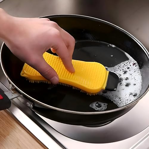Generic - فرشاة غسيل الاطباق - ادوات تنظيف وخضروات فعالة من السيليكون الاصفر الزاهي للاستخدام في المطبخ متعدد الوظائف، مثالية للادوات وادوات المائدة، مجموعة من قطعتين