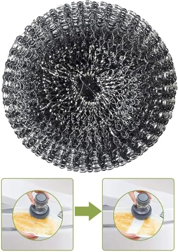 - 【قوة تنظيف متينة】تتميز فرشاة الأطباق هذه بسلك معدني عالي الجودة يخترق ويرفع الشحوم العنيدة والأوساخ دون عناء من الأواني والمقالي والأسطح الخزفية، مما يضمن تنظيف كل طبق وسطح الطاولة والموقد بالكامل دون خدش الأسطح الحساسة، مما يجعل مهام مطبخك أسرع وأكثر كفاءة وإرضاءً في كل مرة تستخدمها. ️