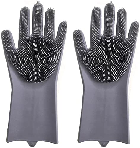 Spaceshoop - قفازات غسيل الاطباق مصنوعة من السيليكون بلون رمادي للاعمال المنزلية وفرش الفاكهة للمطبخ 5643454145