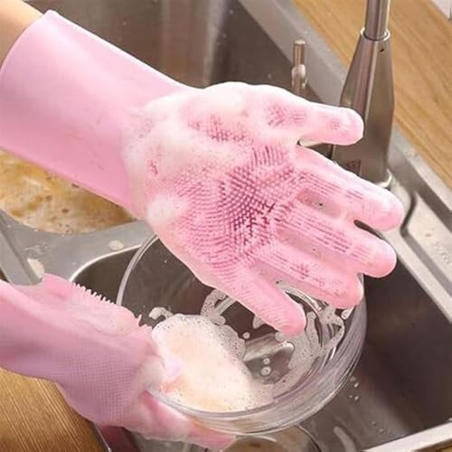 - قفازات مصنوعة من السيليكون عالي الجودة توفر تأثيرات فائقة لغسل الأطباق وتنظيف المطبخ.