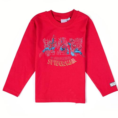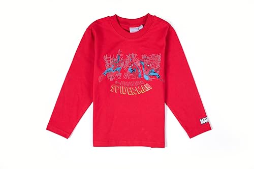 Disney - تيشرت للأولاد بطبعة لوجو سبايدرمان بأكمام طويلة ورقبة دائرية ضيقة من ديزني