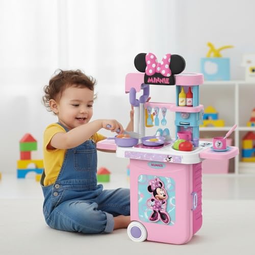 Disney - طقم مطبخ 3 في 1 بتصميم ميني كيدز EODS008-951 في شنطة بعجلات من ديزني - متعدد الألوان