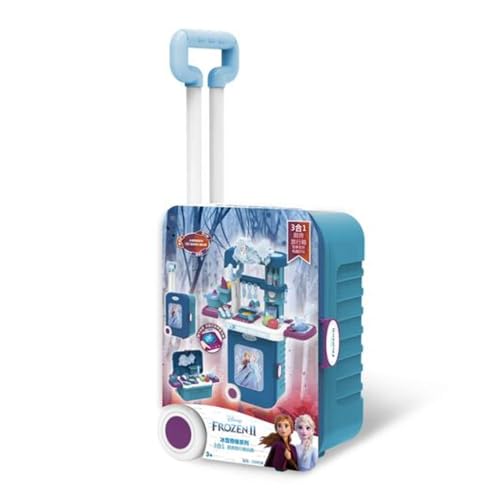 - مجموعة ألعاب المطبخ المحمولة 3 في 1 بتصميم فروزن 2 في شنطة بعجلات للبنات.