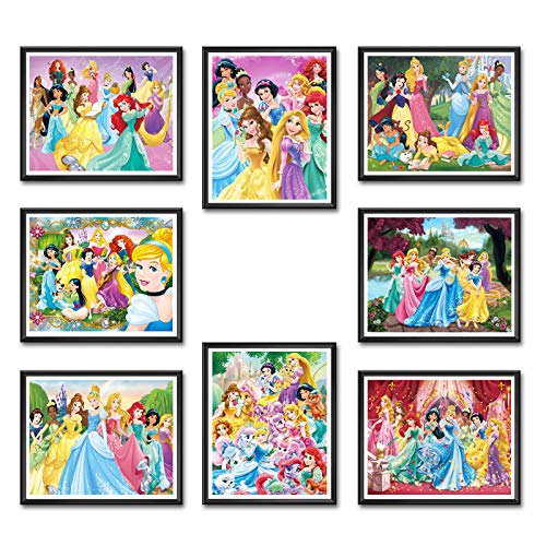 Generic - بوستر صور مانغا بتصميم اميرات ديزني لديكور المنزل بدون اطار، 8 قطع، متعدد الألوان