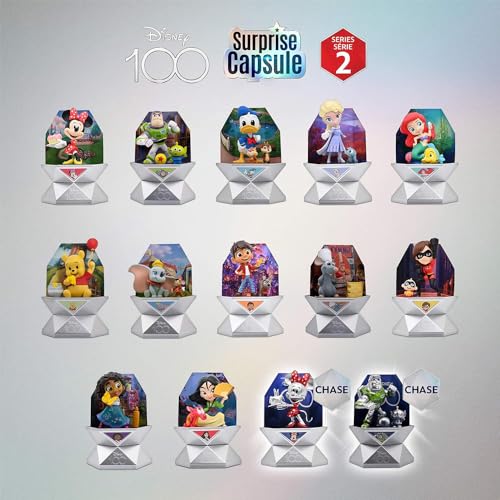 Disney - كبسولات سربرايز بمناسبة الذكرى ال100 من ديزني،غامضة ومفاجئة مع مجسمات لشخصيات للأطفال والكبار - قطعة واحدة عشوائية، بلاستيك، متعدد الألوان