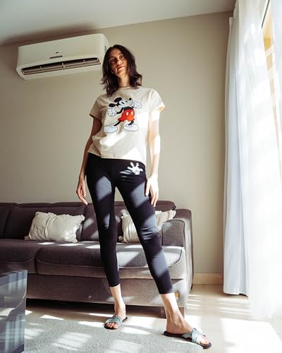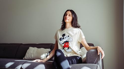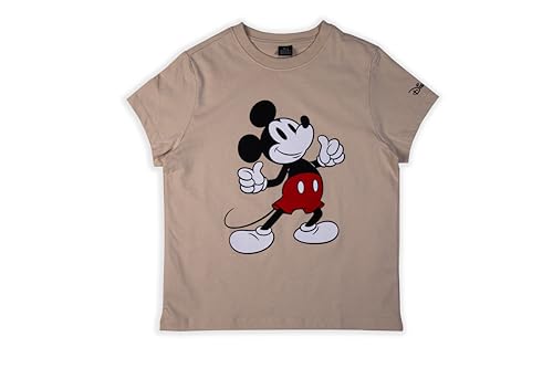 Disney - تيشرت بأكمام قصيرة ورقبة دائرية ضيقة للنساء مطبوع عليه ميكي ماوس من ديزني