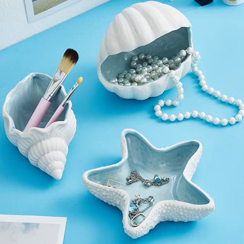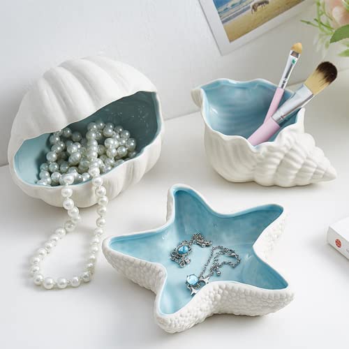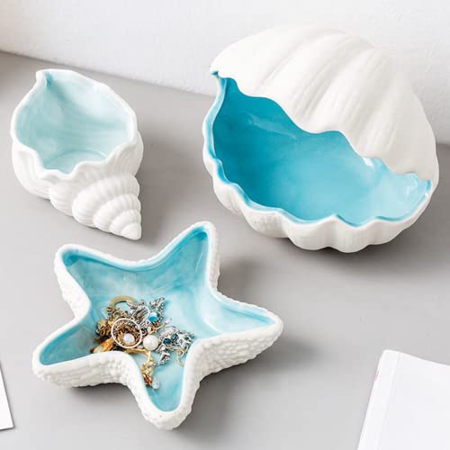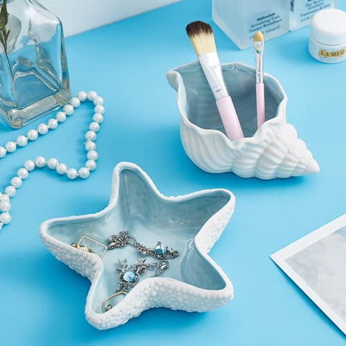 Disoza - وعاء مجوهرات بتصميم نجم البحر، وعاء مزخرف للمجوهرات، صينية خزفية لتخزين المفاتيح والعشاء، طبق حلوى من البورسلين، صينية مفاتيح للمدخل (21 × 19 × 4 سم) من ديسوزا