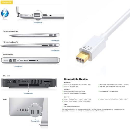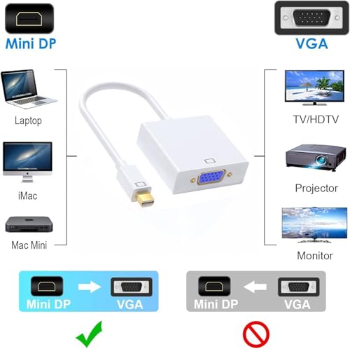 - 【التوافق الواسع】يدعم محول ميني ديسبلاى بورت إلى VGAثاندربولت 2، وMacBook، وMacBook Air، وMacBook Pro، وiMac، وMac mini، وMac Pro، وSurface Pro 2/3/4، وHP Envy 14/17، وLenovo ThinkPad X1 Carbon/X230/X240s/L540/T540p/W540، وDell XPS 13/14/15/17 والمزيد، متوافق على نطاق واسع مع أجهزة الكمبيوتر المزودة بمنافذ Mini DP.