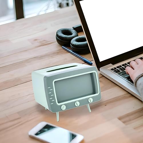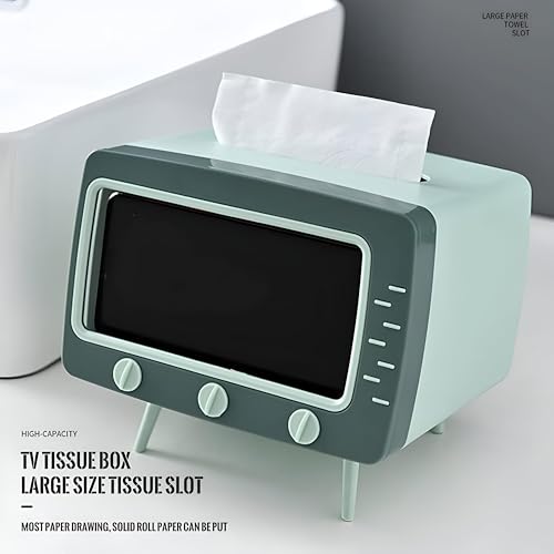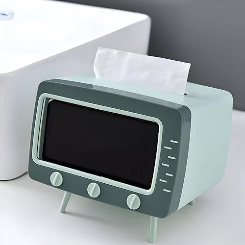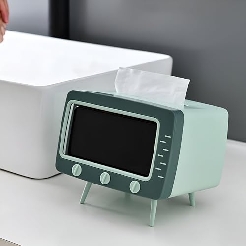 Generic - موزع - حل مبتكر لتخزين المناديل على شكل تلفزيون قديم الطراز مع فتحة مدمجة لعرض الهاتف الذكي قطعة منزلية مزخرفة وعملية (أخضر)