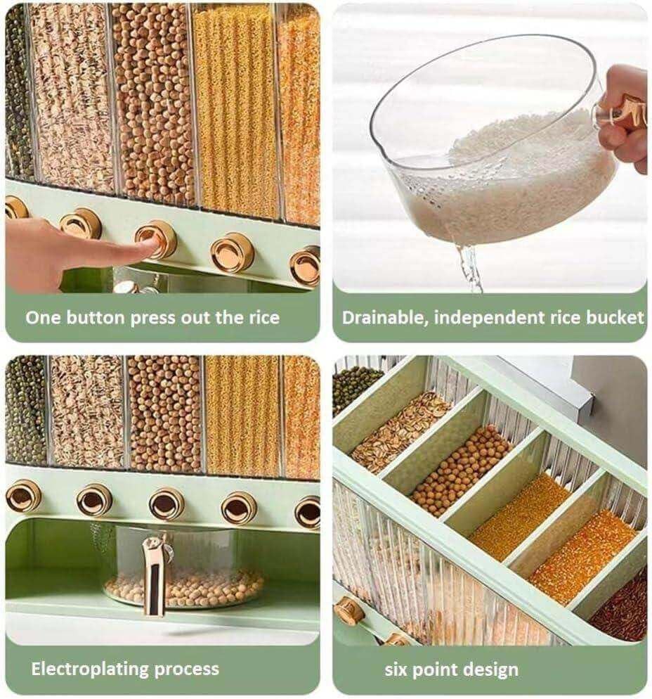- خامة أكريليك عالية الجودة ومتينه ✅ تقسيم 6 خانات عملية 🫘 دورق معيار مرفق لسهولة الاستخدام 🥄 تصميم أنيق باللون الذهبي يزين مطبخك ✨