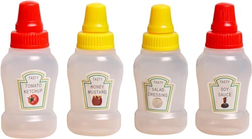 Generic - عبقرية التوزيع - توزيع الصوص بدون تسرب - زجاجات ضغط للكاتشب والخردل - مجموعة 4 قطع - حجم صغير - مثالية للمدارس والعزايم والعمل - مصنوعة من | من عام